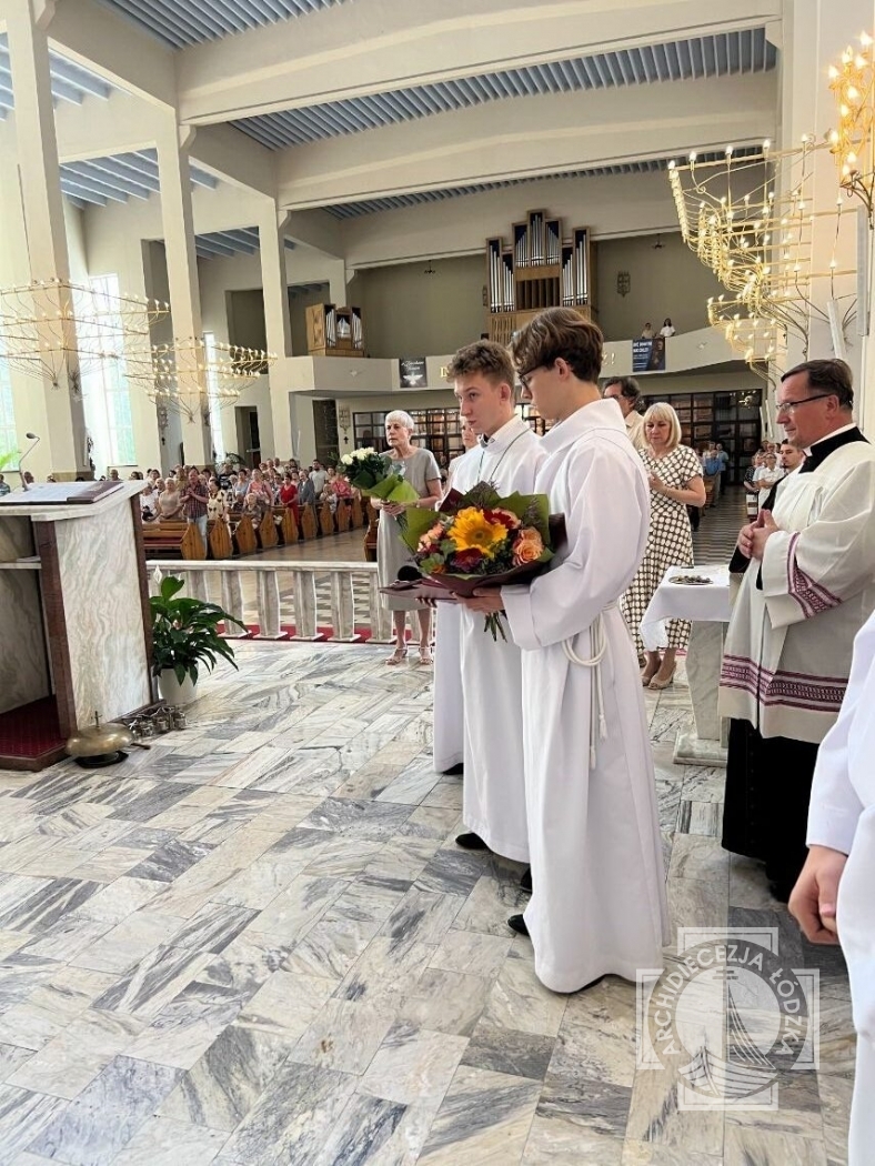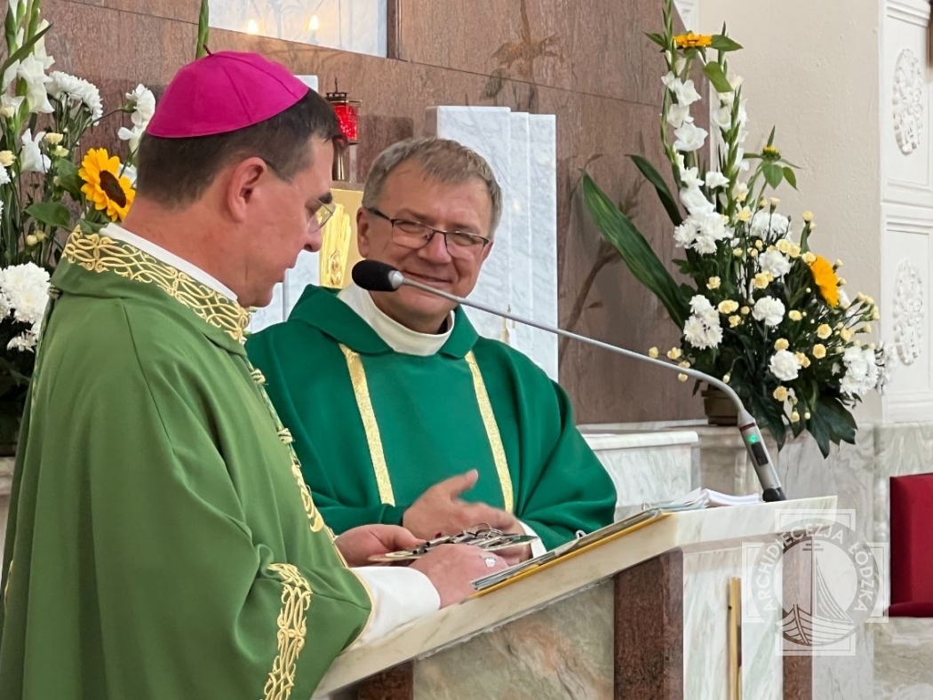 Przed rozpoczęciem Mszy św. odbyło się odczytanie odpowiednich dekretów nominacyjnych przez ks. bpa Marka Marczaka i przełożonego Prowincji Warszawskiej Redemptorystów, o. Dariusza Paszyńskiego CSsR i powitanie wspólnoty redemptorystów w piotrkowskiej parafii, również chlebem i solą przez przedstawicieli wspólnoty parafialnej. Przywołane przez nich słowa św. Jana Pawła II o wspólnej drodze, potężnej miłości, pokornej modlitwie i wytrwałej nadziei, przewijały się potem przez całą uroczystość.