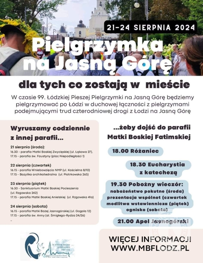 Wszystkie informacje o pielgrzymce, o zapisach, noclegach i przygotowaniu do pielgrzymowania można znaleźć na odnowionej stronie pielgrzymkowej – www.pielgrzymka-lodz.pl.