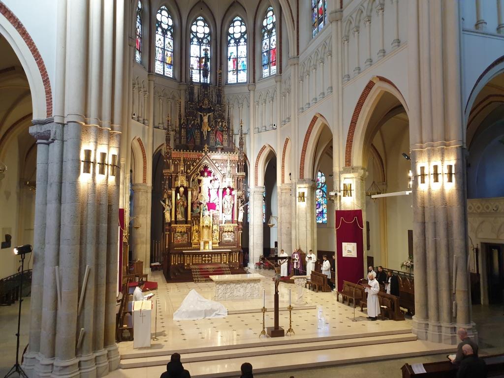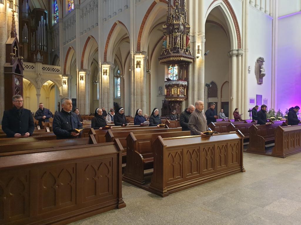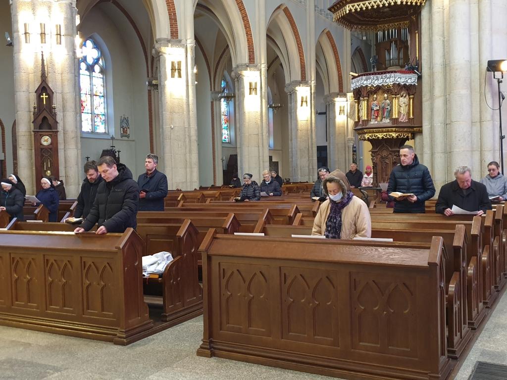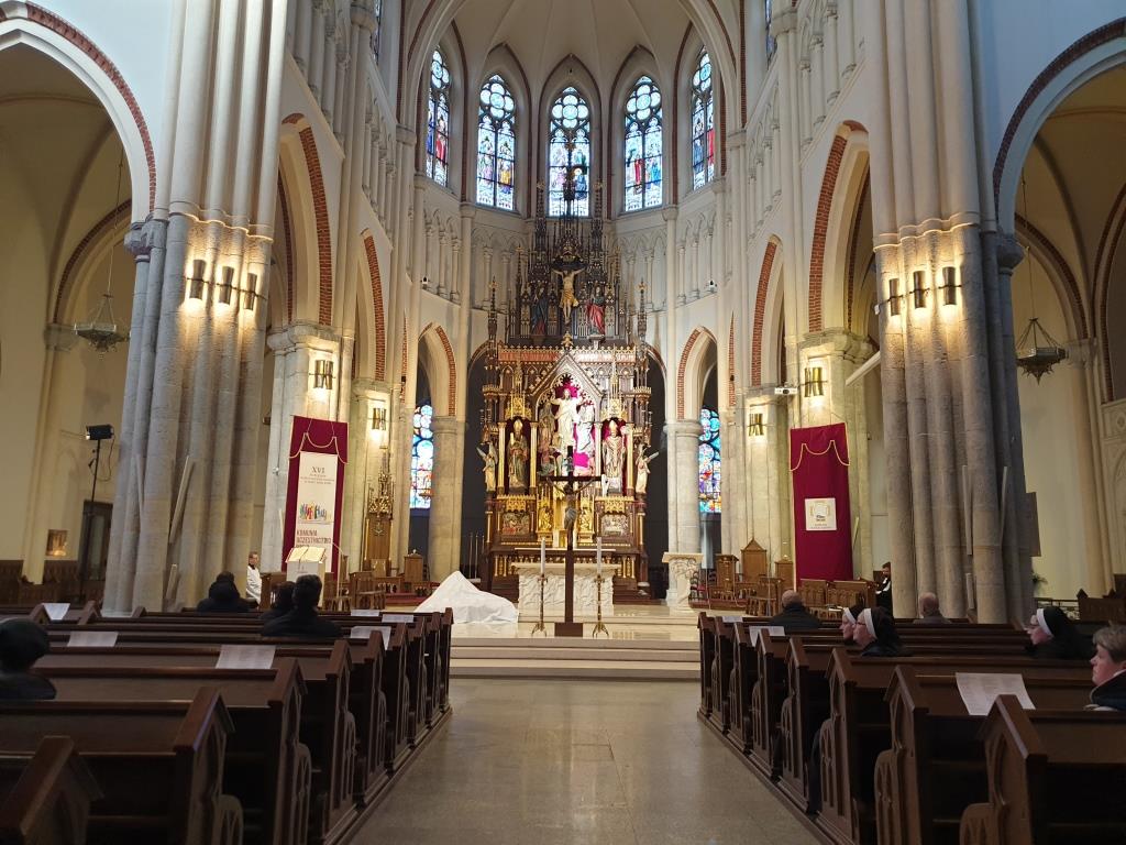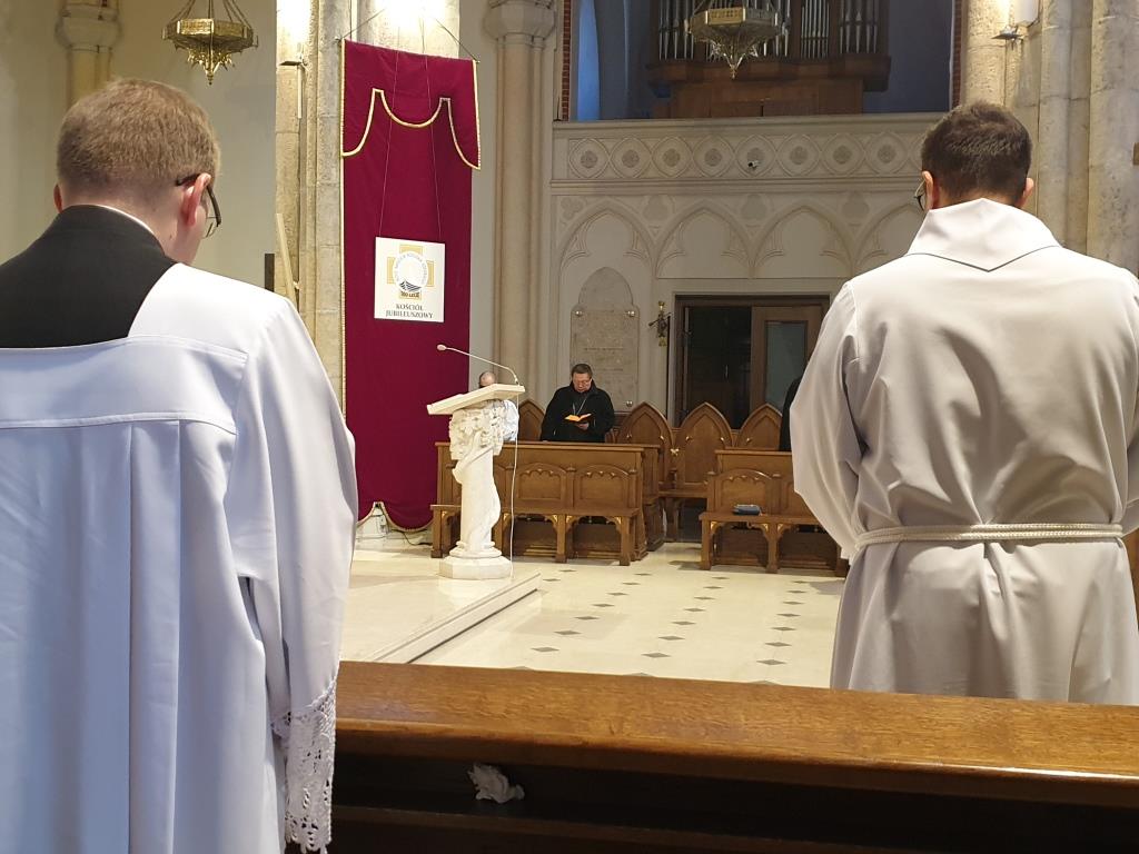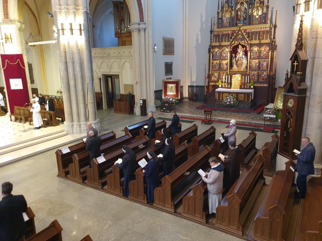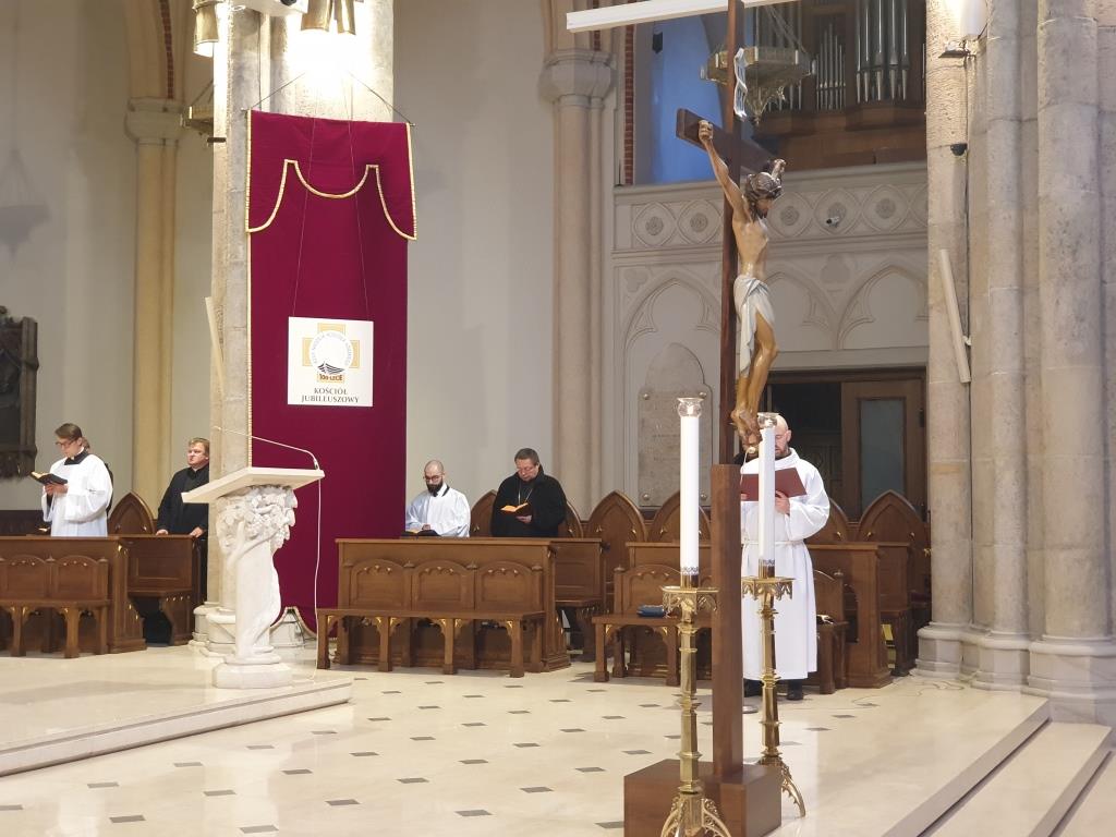 W łódzkiej katedrze wielkosobotnią Ciemną Jutrznię celebrowano o godz. 8:00. Liturgii przewodniczył ks. dr Przemysław Szewczyk – prefekt Wyższego Seminarium Duchownego w Łodzi. W porannej modlitwie Kościoła uczestniczył także ksiądz arcybiskup Grzegorz Ryś, klerycy Wyższego Seminarium Duchownego w Łodzi, siostry zakonne oraz wierni świeccy.