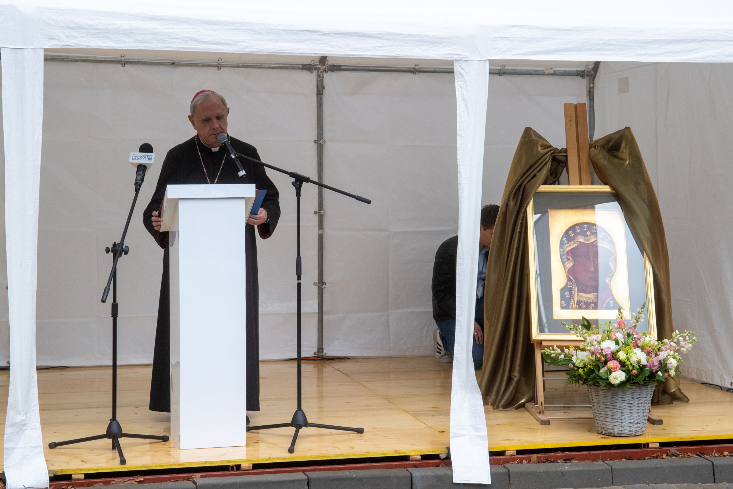 Przed poświeceniem szpitala - którego dokonał bp Ireneusz Pękalski - odsłonięto obraz z wizerunkiem Matki Boskiej Częstochowskiej, który zawisł przy wejściu do nowego budynku.