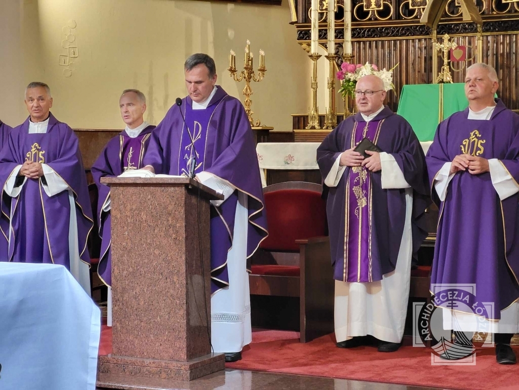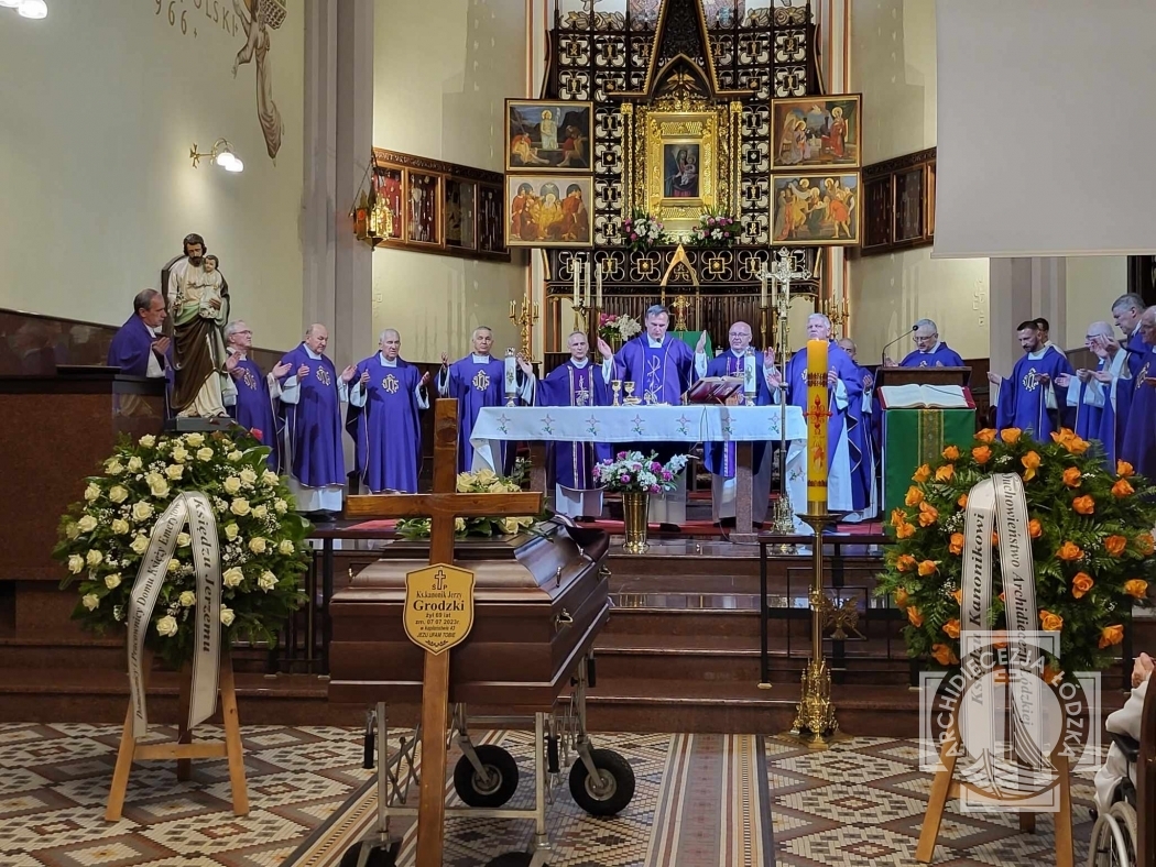 Dziś wieczorem w Sanktuarium Matki Bożej Pocieszenia w Łodzi – celebrowana była Msza święta żałobna za zmarłego księdza kanonika dr. Jerzego Grodzkiego – byłego proboszcza parafii pw. Najświętszego Serca Jezusowego w Piotrkowie Trybunalskim. Uroczystej liturgii przewodniczył ksiądz kan. Mariusz Szcześniak, kustosz Sanktuarium Matki Bożej Pocieszenia w Łodzi oraz dziekan dekanatu Łódź - Chojny, a homilię wygłosił ks. kan. Andrzej Ścieszko – proboszcz parafii pw. Najświętszej Eucharystii w Łodzi.