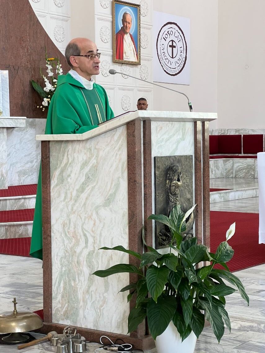 Ks. biskup, przywołując charyzmat redemptorystów – głoszenie Ewangelii ubogim i opuszczonym oraz wychodzenie naprzeciw potrzebom Kościoła – oraz postać i dzieło św. Alfonsa Liguori, gorąco powitał w imieniu ks. arcybiskupa Grzegorza Rysia i całej archidiecezji duchowych synów św. Alfonsa, życząc ewangelicznego zapału i gorliwości w pracy duszpasterskiej w parafii oraz na niwie misji parafialnych i rekolekcji.