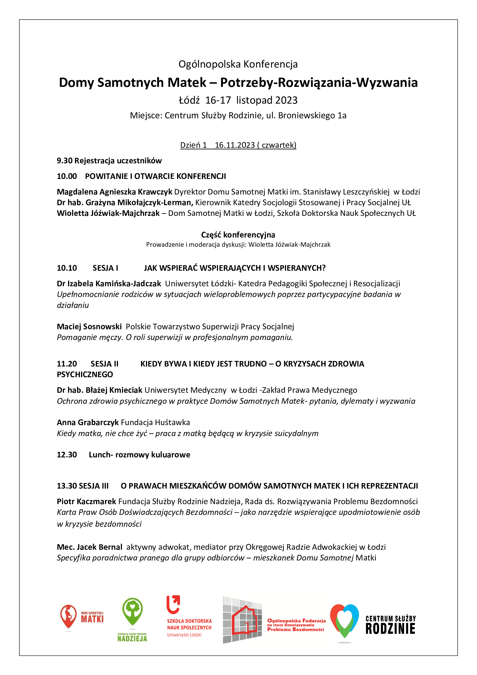 O ogólnopolskiej konferencji zatytułowanej Domy Samotnych Matek – Potrzeby – Rozwiązania – Wyzwania, która w dniach 16-17 listopada br. odbędzie się w łódzkim Domu Samotnej Matki opowiada Wioletta Jóźwiak – Majchrzak – wicedyrektor Domu Samotnej Matki w Łodzi.