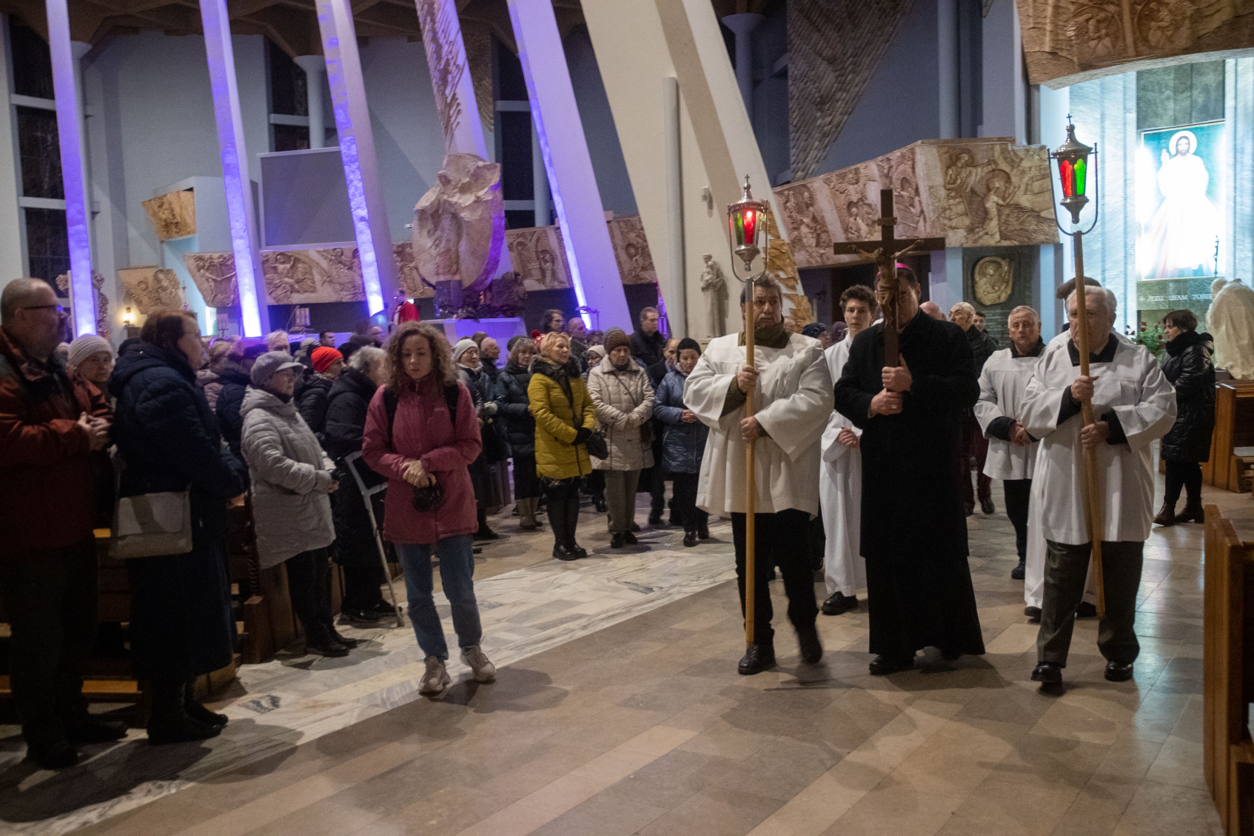Po Mszy Św. wierni uczestniczyli w Drodze Krzyżowej w intencji osób skrzywdzonych w Kościele, którą poprowadził ks. dr Tomasz Liszewski - duszpasterz Ofiar Wykorzystania Seksualnego i Ich Rodzin. W czasie nabożeństwa krzyż od stacji do stacji niósł bp Marek Marczak.