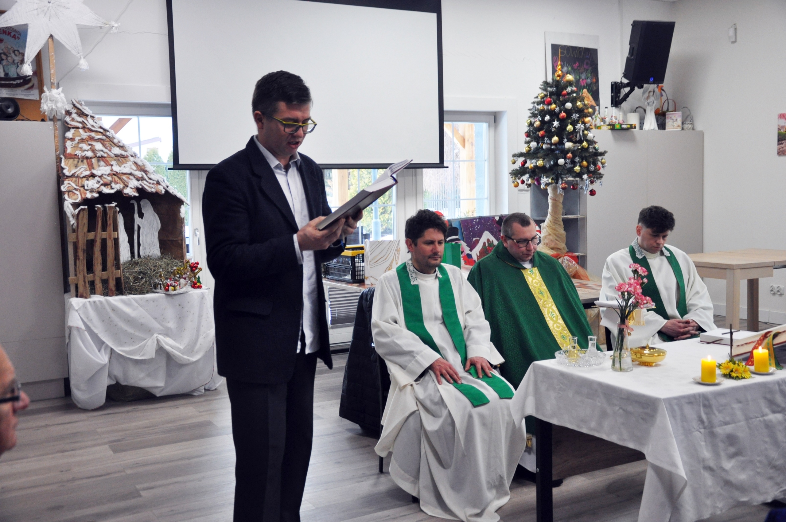Zebranych gości i sympatyków „Muminków” przywitał Ksiądz Mariusz Siciński – Proboszcz Parafii NMP Nieustającej Pomocy w Andrespolu i opiekun Stowarzyszenia. Mszy Świętej na rozpoczęcie spotkania wigilijnego przewodniczył Ksiądz Tomasz Grzejdziak – Wikariusz Parafii Matki Boskiej Częstochowskiej w Ksawerowie. Mszę Świętą sprawował również Ksiądz Jarosław Magierski – diecezjalny Duszpasterz Środowisk Medycznych.