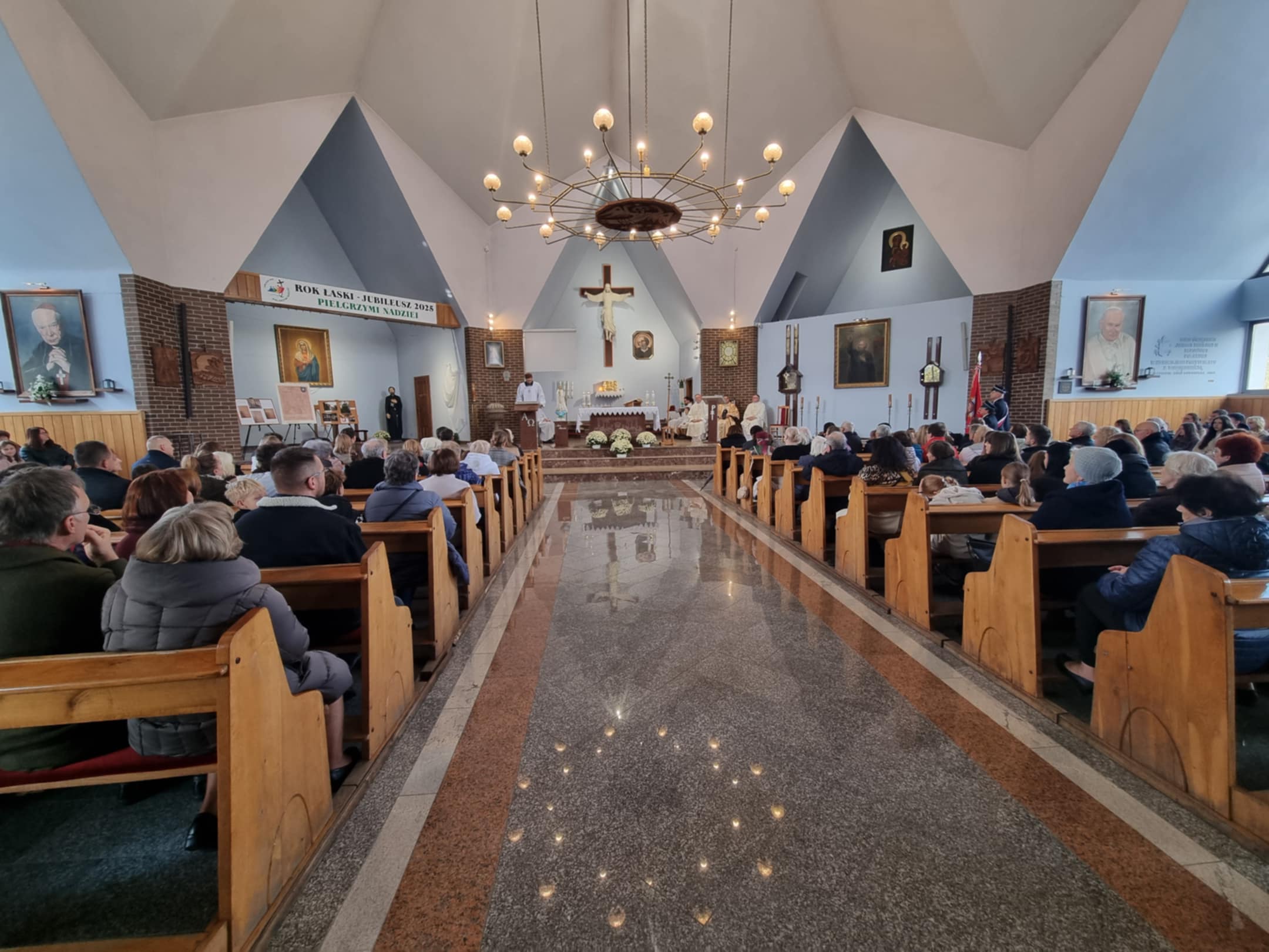 Homilię do licznie zgromadzonych wiernych wygłosił ksiądz Wojciech Lemański, który w swoim słowie podkreślił, że ta świątynia zaczęła się budować jeszcze długo przed wzniesieniem murów kościoła. "Ten Kościół zaczął budować się z żywych kamieni ludzi, którzy chcieli razem Bogu chwałę oddawać"- mówił ksiądz Lemański. I dalej zaznaczył- "My dzisiaj nie świętujemy odrestaurowania tego kościoła, my dzisiaj Bogu dzięki składamy za tych, którzy ponad troskę o to, by w ten czas powojenny mieć co włożyć do garnka i mieć dach nad głową, mieli troskę o to, że chcą mieć swój Kościół, swoje miejsce modlitwy i spotkania z Bogiem."