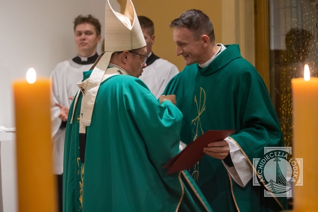 Po modlitwie po Komunii, przed błogosławieństwem, metropolita łódzki podziękował księdzu rektorowi Sławomirowi Szczyrbie, który - jak zauważył kard. Ryś - uratował Seminarium 35+, w którym nie tyle widział instytucję, ale widział człowieka. - To seminarium zaistniało w Krakowie. Ojciec Józef był jego pierwszym rektorem. Potem, dla powodów, o których nie zamierzam tu mówić, bo to nie jest na to miejsce, musiało być przeniesione do Łodzi. To nie jest tak, że się przenosi instytucje, przenieść seminarium, łóżka dla kleryków, obraz Jana Pawła w kaplicy. Nie wystarczy. Musi być człowiek. Ty byłeś pierwszym człowiekiem, którego o to poprosiłem i od razu takim, który się zgodził. Kiedy myślę o tych latach, w których ty byłeś rektorem, to chcę powiedzieć, że uczyłeś tego, do czego wzywa ostatni synod, co tak ładnie synod nazwał nawróceniem relacyjnym. To ty właściwie wszystkie te lata tego uczyłeś. Nastawienia na osobę. To jest przepiękne. Myślę, że ksiądz rektor Szczyrba właściwie nigdy nie myślał o seminarium jako o instytucji. - zauważył kard. Ryś.