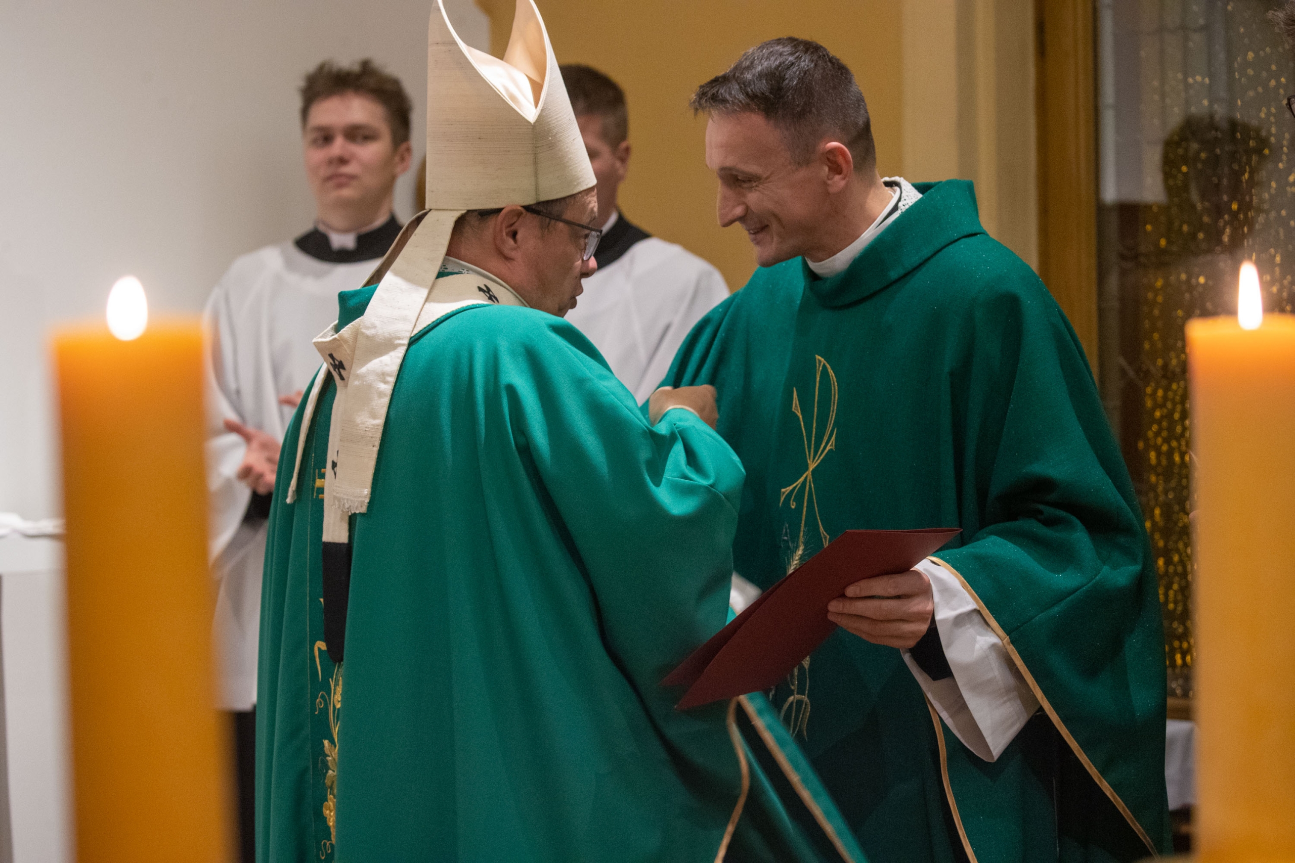 Dziś wieczorem w kaplicy seminaryjnej Dobrego Pasterza kardynał Grzegorz Ryś wraz z całą wspólnotą Ogólnopolskiego Seminarium dla Starszych Kandydatów do Święceń dziękował za ponad 5 lat posługi rektorskiej ks. dr. hab. Sławomira Szczyrby oraz poinformował o nominacji nowego retora i prefekta Seminarium 35+.