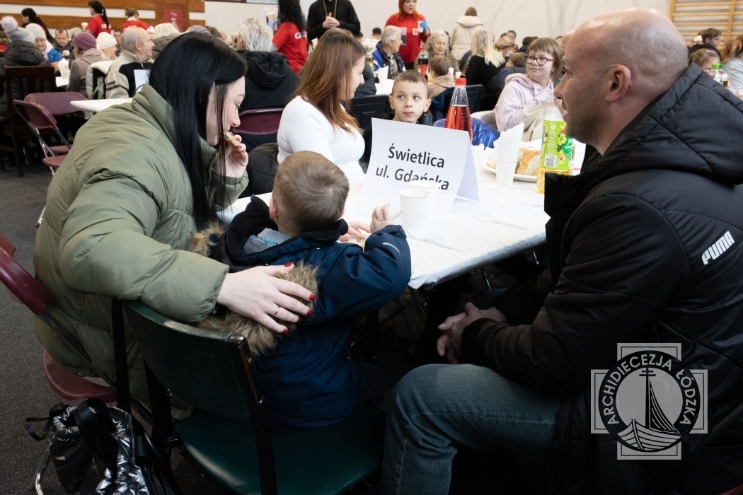 Na stołach pojawiły się tradycyjnie wigilijne potrawy jak czerwony barszcz, pierogi, kapusta z grochem i pieczony karp, a przygotowaniem całej uroczystości i pomocą w jej przebiegu zajęli się pracownicy łódzkiej Caritas.
