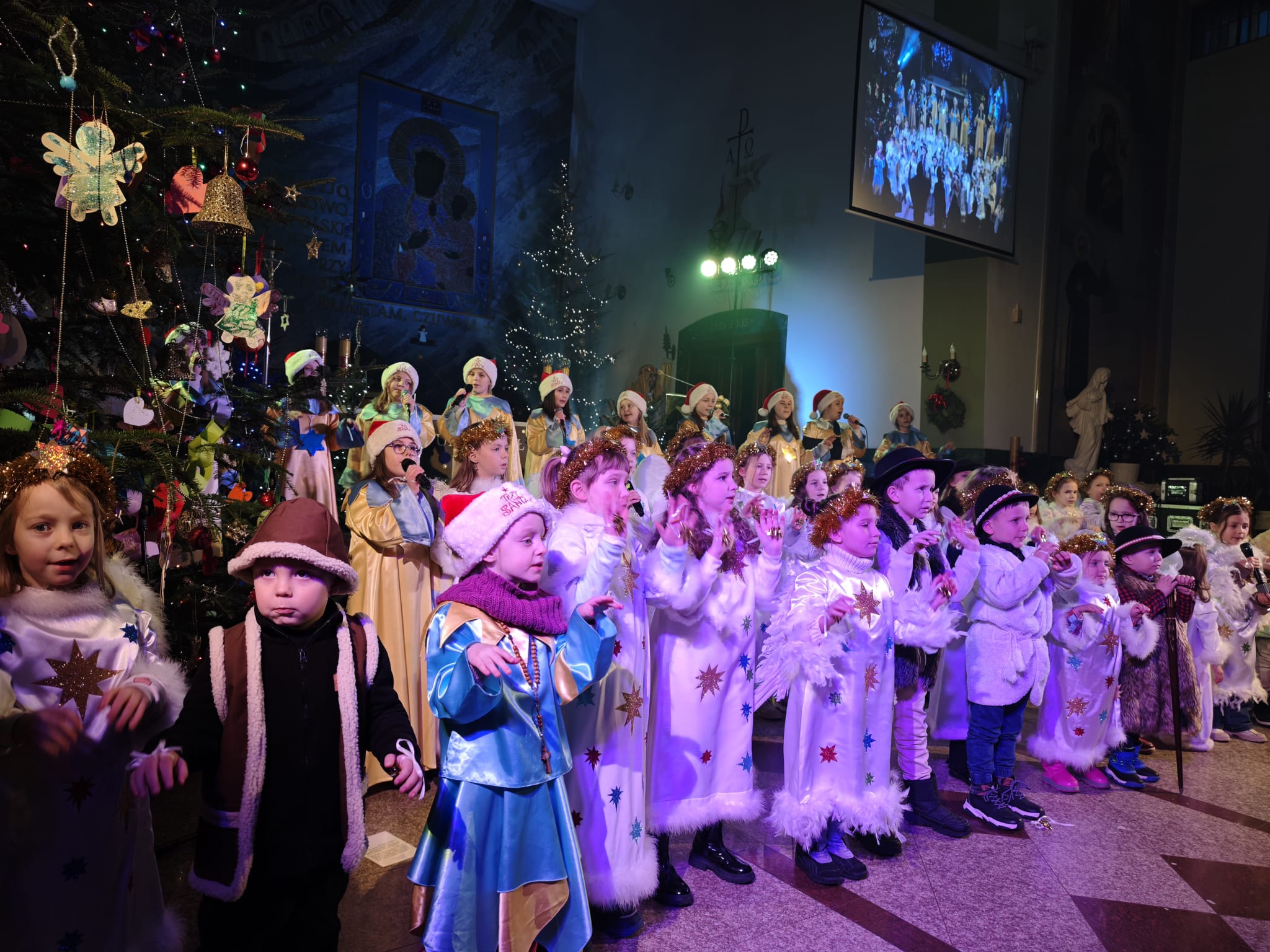 Podczas kolędowania dało się wyczuć w każdym zakątku kościoła rodziną atmosferę oraz ciepło spojrzeń pełnych wzruszeń. Młodzi artyści poprowadzili słuchaczy w niezwykłą muzyczną wędrówkę – od tradycyjnych polskich kolęd, takich jak „Gdy się Chrystus rodzi”, „Lulajże Jezuniu”, czy „Gore gwiazda” po współczesne pastorałki „Skrzypi wóz”, „Hu, hu, ha”, „Kolęda święta”, „Król mój” i „Kto wie czy za rogiem”, które poruszały serca prostotą słów i dziecięcą radością. Niosły prawdę przesłania: od radosnego ogłoszenia Bożego Narodzenia i czułego zaproszenia do osobistej relacji z Jezusem, po poruszającą zachętę, by odważyć się marzyć, zaufać Bogu i odkrywać nadzieję ukrytą w betlejemskiej nocy.