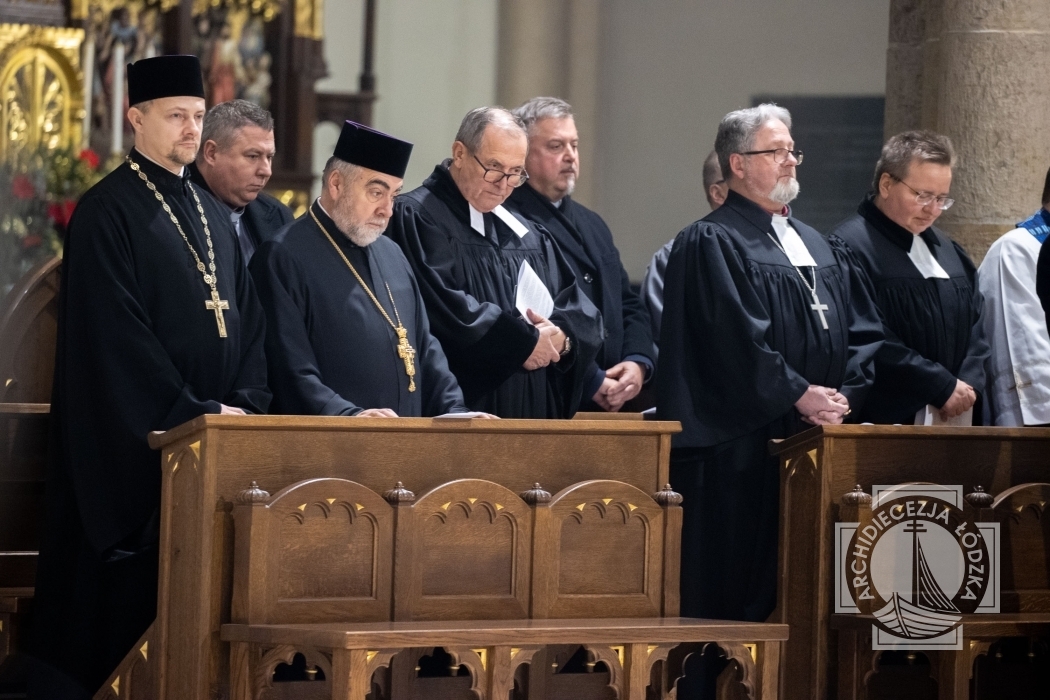 Witając wszystkich zebranych na liturgii bp Zbigniew Wołkowicz zwrócił uwagę na - podpisaną niedawno Kartę Ekumeniczną, która opowiada o tym, jak żyć jeszcze bardziej w jedności. Została ona wypracowana przez Konferencję Kościołów Europejskich oraz Radę Konferencji Episkopatów Europy. Te dwa ciała spotkały się w osobach swoich przedstawicieli, aby wypracować Kartę, która pokazuje nam jak pogłębiać naszą jedność i co możemy robić razem. Stoimy też wobec kolejnego wyzwania ekumenicznego, którego symbolem jest krzyż, który jest przy ołtarzu. W tym roku - pod koniec grudnia - w naszym mieście odbędzie się Europejskie Spotkanie Młodych Taize. W tym tygodniu módlmy się w sposób szczególny, abyśmy potrafili co raz bardziej pogłębiać naszą jedność, byśmy na koniec tego roku mogli przyjąć młodych ludzi, którzy przyjadą do Łodzi, by tutaj wspólnie uwielbiać Pana i modlić się o pokój. – apelował we wstępie administrator Archidiecezji Łódzkiej.