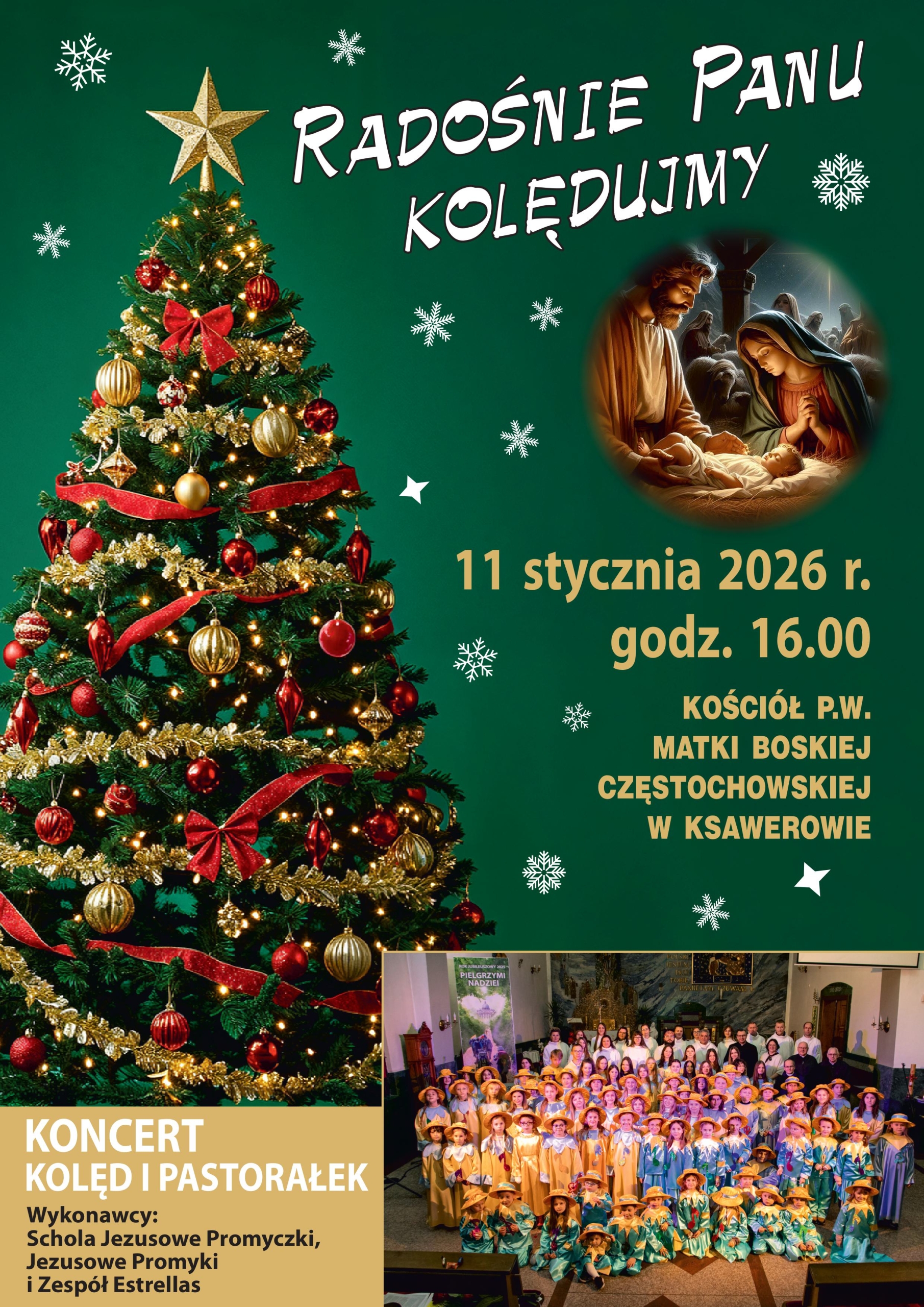 Serdecznie zapraszamy do Ksawerowa na Koncert Kolęd, który odbędzie się 11 stycznia w parafii MB Częstochowskiej o godzinie 16.00.