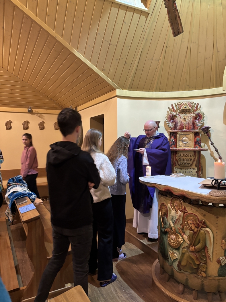 Wyjątkowym momentem wyjazdu była Środa Popielcowa. Tego dnia nie tylko uczestniczyliśmy w Eucharystii pod przewodnictwem naszego duszpasterza, posypaliśmy głowy popiołem, a po Mszy Świętej odbyła się adoracja Najświętszego Sakramentu, podczas której wspólnie śpiewaliśmy kanony Taizé. Był to czas wyciszenia i modlitwy – piękne duchowe dopełnienie naszego wyjazdu.