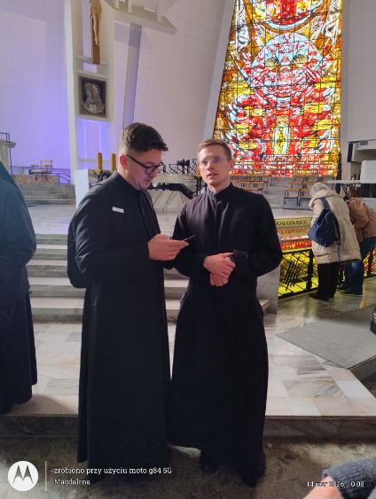 Nasze rekolekcje w drodze rozpoczęliśmy od nawiedzenia grobów polskich męczenników w Warszawie: św. Andrzeja Boboli i bł. Jerzego Popiełuszki. Zostaliśmy obdarzeni niezwykłą gościnnością przez kustosza sanktuarium świętego Andrzeja – o. Pawła Buckiego SJ, oraz kleryka Wojtka, pochodzącego z Łodzi, który w sobotę przyjmie święcenia diakonatu. Przybliżył nam postać Męczennika oraz oprowadził po muzeum. Mieliśmy również okazję pomodlić się przy Jego grobie. Centralnym punktem naszej wizyty była Msza Święta w kameralnej kaplicy w jezuickim “Magis house” oraz indywidualne oddanie czci relikwiom świętego Andrzeja. Po obiedzie udaliśmy się do krypty męczenników – mieszkańców jezuickiego domu zamordowanych w kotłowni podczas Powstania Warszawskiego. Dla młodzieży kleryk Wojtek przygotował quiz podsumowujący, oczywiście z nagrodami dla zwycięzców.