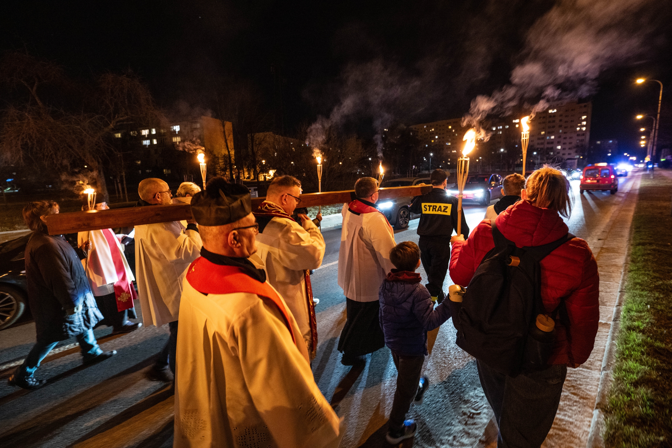 Wierni wyruszyli za wielkim drewnianym krzyżem ulicami Kusocińskiego i ulicą Retkińską do kościoła Najświętszego Serca Jezusowego. Krzyż naprzemiennie niosły kobiety, mężczyźni, kapłani, ministranci, członkowie rady parafialnej i młodzież, a nad całością czuwali druhowie z Ochotniczej Straży Pożarnej Łódź – Retkinia. - Świadomi naszych grzechów, prosimy Cię – daj nam uprzątnąć dom ojczysty. Wyzwól nas od zniewoleń ducha, i tak jak przeprowadziłeś nas suchą nogą przez Morze Czerwone, naucz nas być wolnymi. Amen – zakończyła rozważania drogi krzyżowej jedna z parafianek. Na zakończenie nabożeństwa wszyscy wierni mogli przyjąć Komunię Świętą i pomodlić się przy niesionym ulicami osiedla krzyżu. Dziękując za przeżyte nabożeństwo, proboszcz par. Najświętszego Serca Jezusowego ks. Piotr Pirek poprosił także o modlitwę za nowo mianowanego przez Ojca Świętego arcybiskupa metropolitę łódzkiego kard. Konrada Krajewskiego.