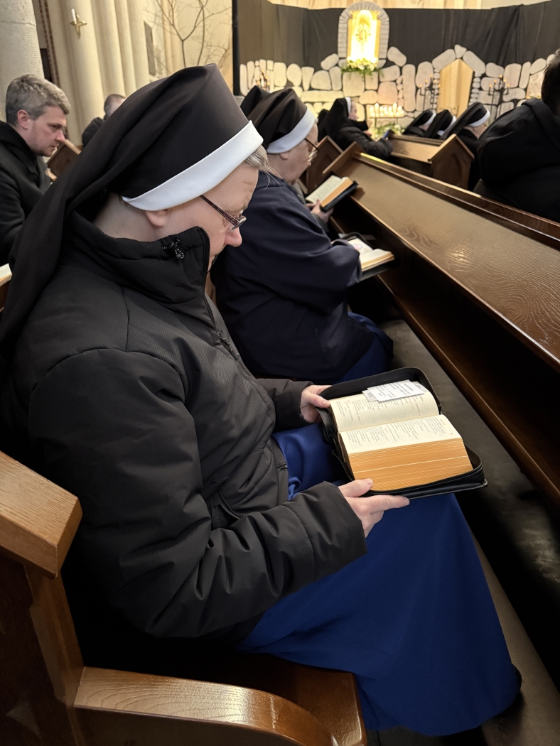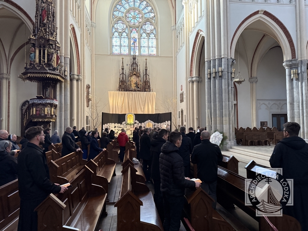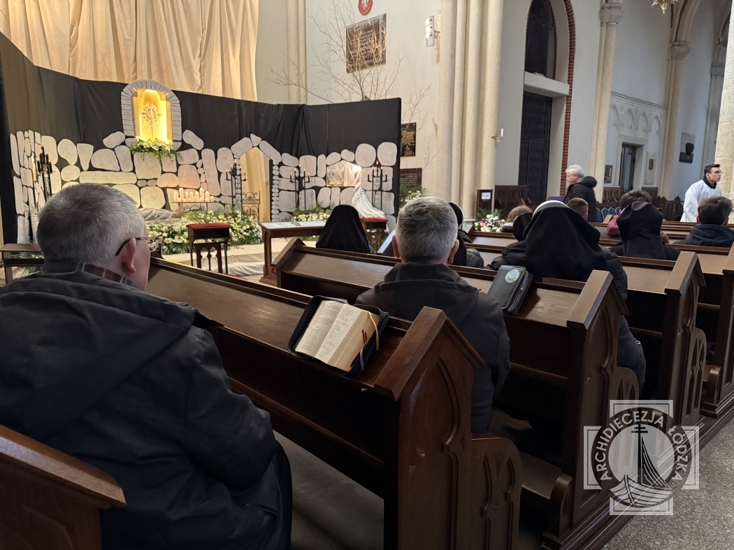 W łódzkiej katedrze wielkosobotnią Ciemną Jutrznię celebrowano o godz. 8:00. Liturgii przewodniczył ks. dr Tomasz Liszewski, rektor Wyższego Seminarium Duchownego w Łodzi. W porannej modlitwie Kościoła uczestniczył także kard. Konrad Krajewski, bp Marek Marczak, bp Zbigniew Wołkowicz, bp Piotr Kleszcz OFM Conv., klerycy Wyższego Seminarium Duchownego w Łodzi, siostry zakonne oraz wierni świeccy.