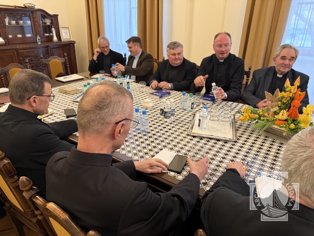 W samo południe - podczas trwania Rady Kapłańskiej - metropolita łódzki modlił się wspólnie z członkami Rady oraz pracownikami Kurii wielkanocną modlitwą Królowo Nieba, a następnie przybliżając cel zwołania Rady Kapłańskiej powiedział między innymi - zebraliśmy się, żeby zastanowić się jakie są najważniejsze sprawy, które dotyczą naszej diecezji - takie z którymi nie można czekać. Chodzi o decyzje, które chcemy podejmować synodalnie - czyli rozmawiając o tych sprawach, które dziś trzeba podjąć, które można podjąć za tydzień, i o tych, które jeszcze mogą poczekać. Przy tym modlimy się i myślę, że kiedy jesteśmy razem, to jesteśmy bardzo silni. Pan Jezus mówi - gdzie dwóch albo trzech zebranych jest w moje Imię, to… góry mogą przenosić, a nas jest tutaj więcej. Módlmy się za siebie wzajemnie, żebyśmy wszystkie decyzje podejmowali w mocy Ducha Świętego i dla dobra osobistego ludzi i naszego Kościoła. - podkreślił kard. Krajewski.