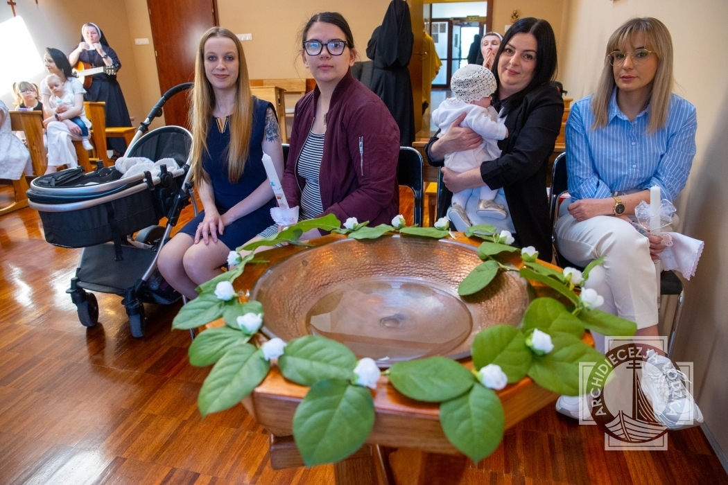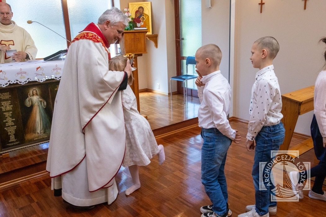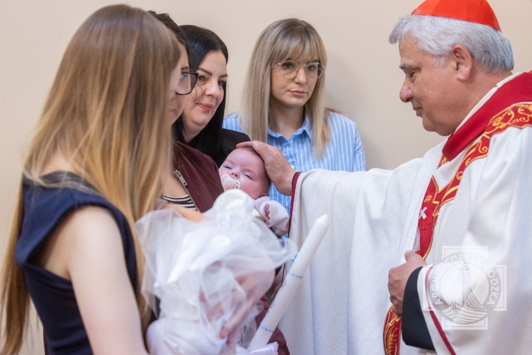 Podczas Eucharystii kard. Krajewski udzielił Sakramentu Chrztu Świętego dwóm dziewczynkom, które już od jakiegoś czasu - wraz ze swoimi mamami - zamieszkują w DSM. Metropolita łódzki po udzieleniu Sakramentu wręczył mamom papieskie różańce polecając, by modliły się za swoje pociechy.