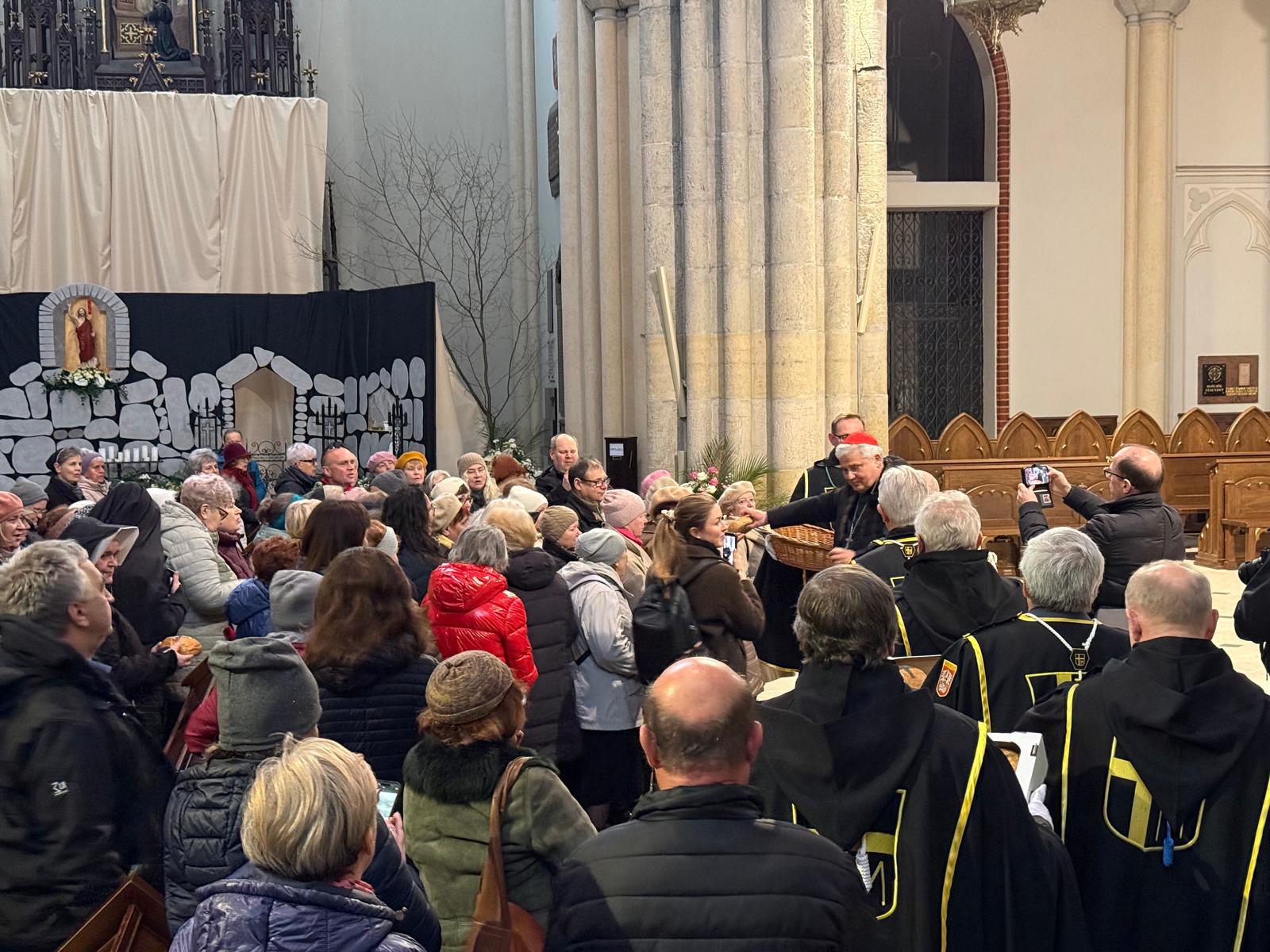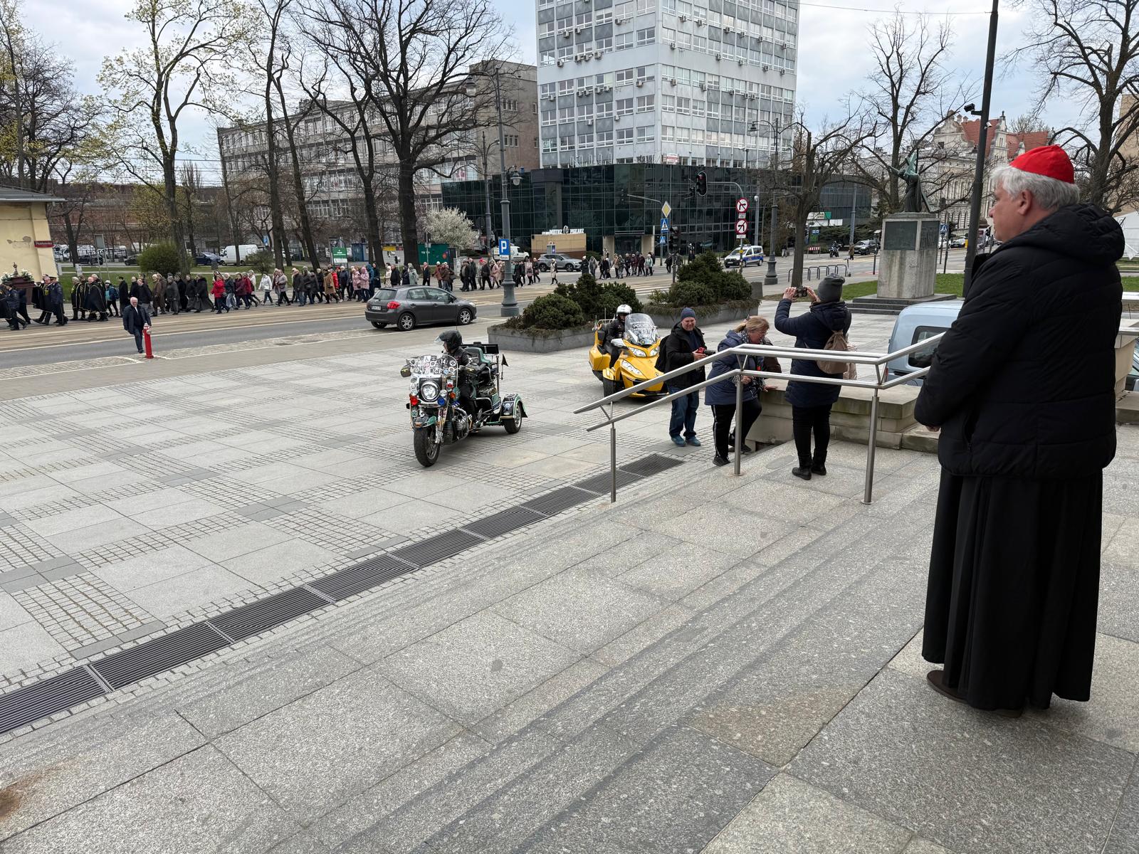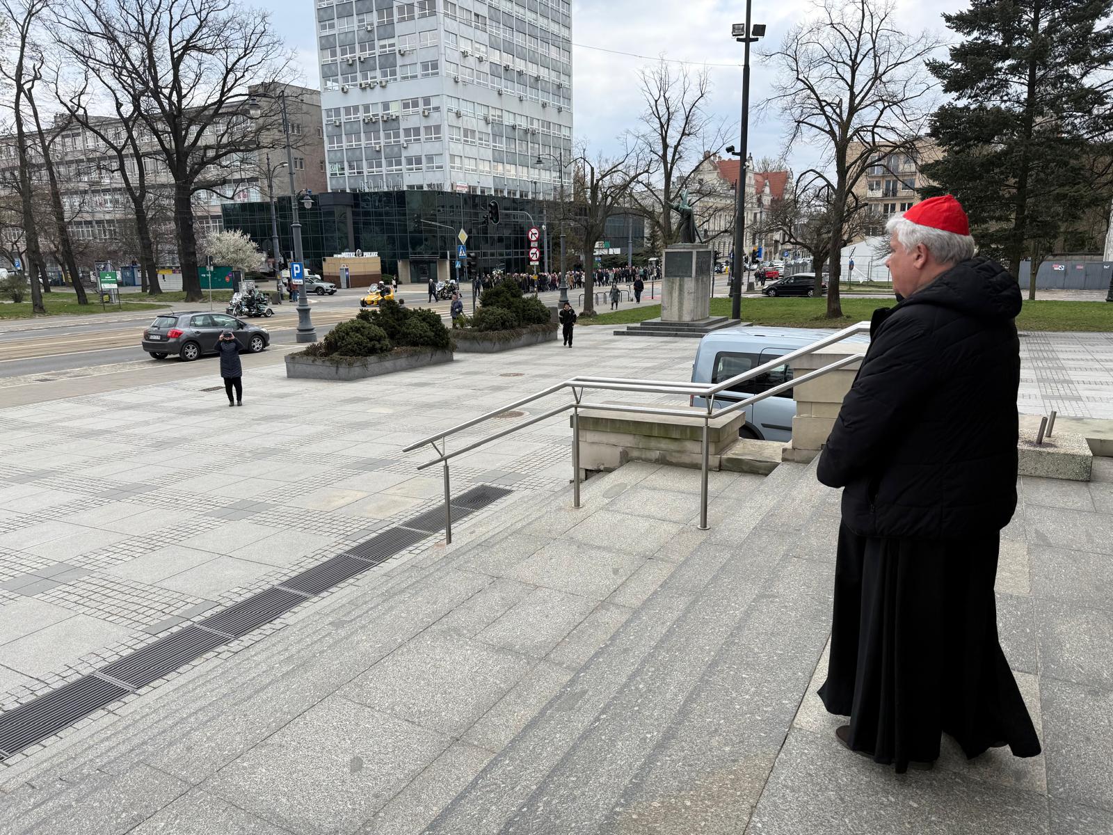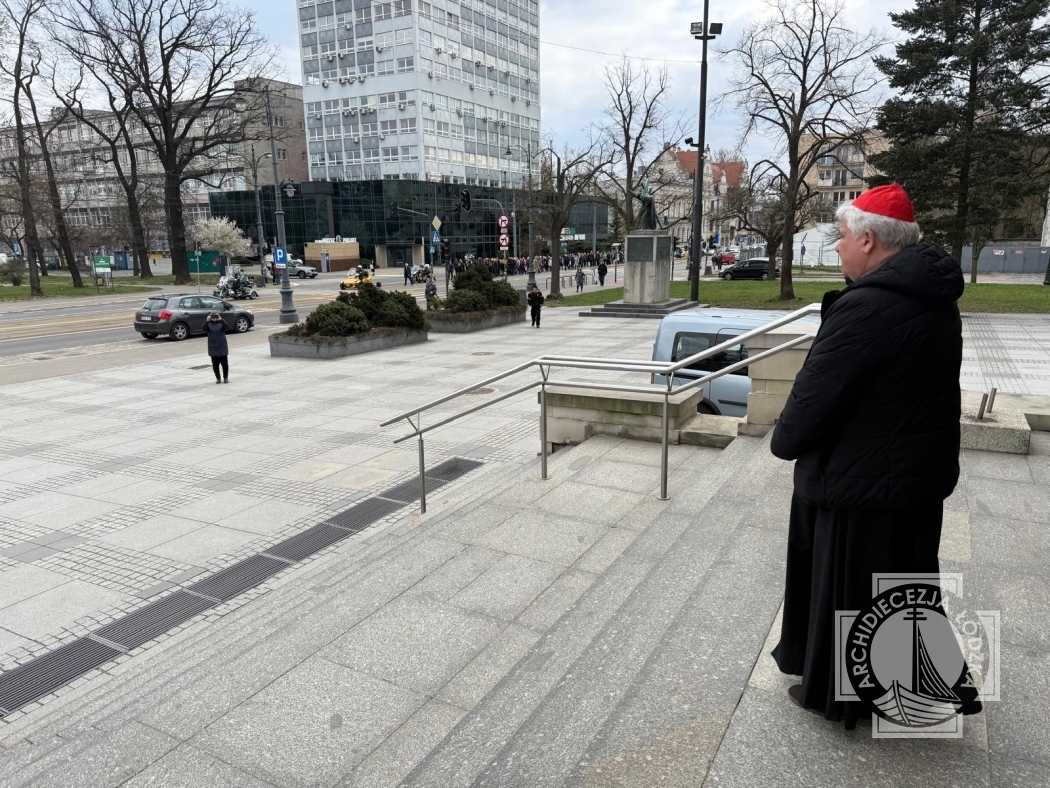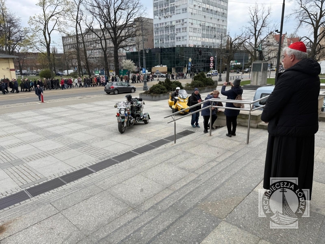 Ksiądz kardynał przywitał w katedrze osoby maszerujące z parafii świętej siostry Faustyny z parku Weneckiego na cześć rocznicy powołania apostołki miłosierdzia. Jezus objawił się siostrze Faustynie kiedy ta brała udział w zabawie w parku Weneckim. Cały skrwawiony zapytał „dokąd będziesz mnie zwodzić?”