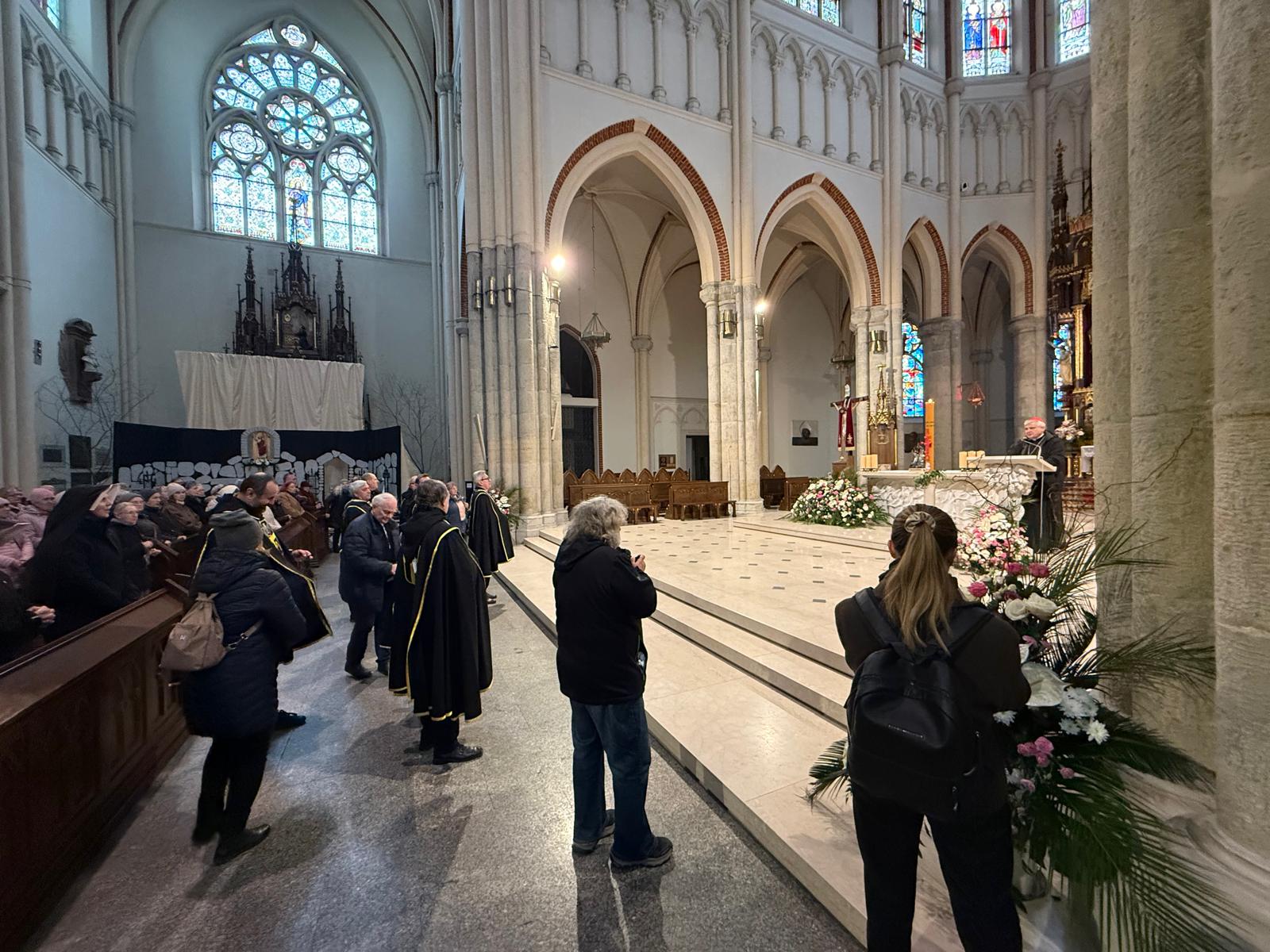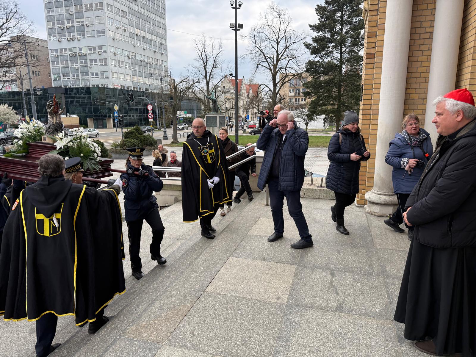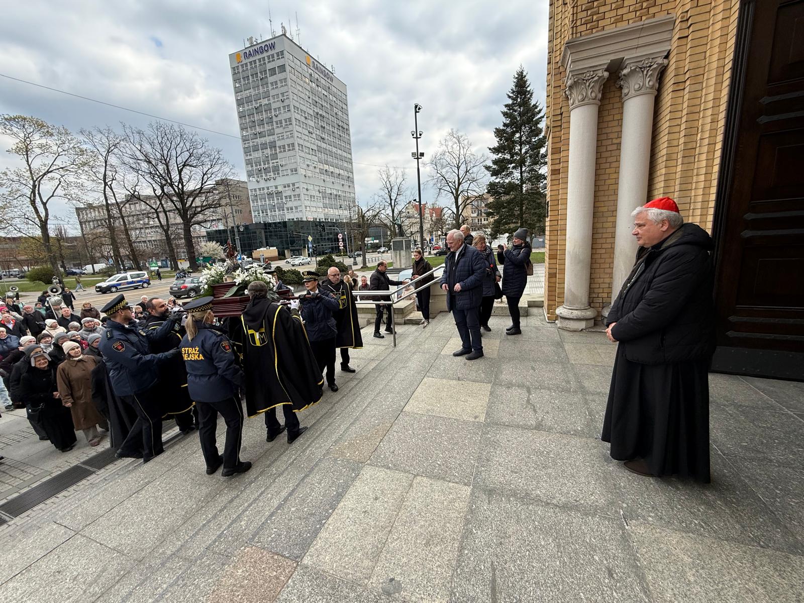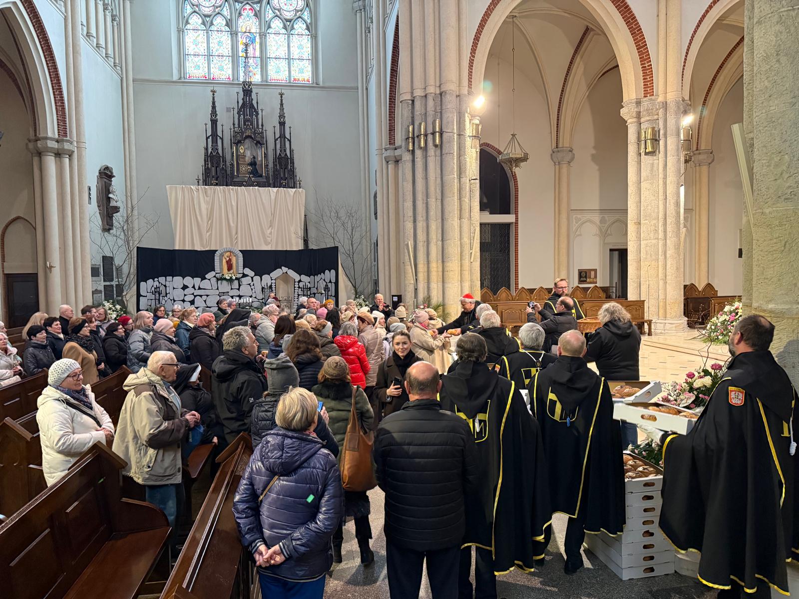 Ksiądz kardynał przywitał w katedrze osoby maszerujące z parafii świętej siostry Faustyny z parku Weneckiego na cześć rocznicy powołania apostołki miłosierdzia. Jezus objawił się siostrze Faustynie kiedy ta brała udział w zabawie w parku Weneckim. Cały skrwawiony zapytał „dokąd będziesz mnie zwodzić?”